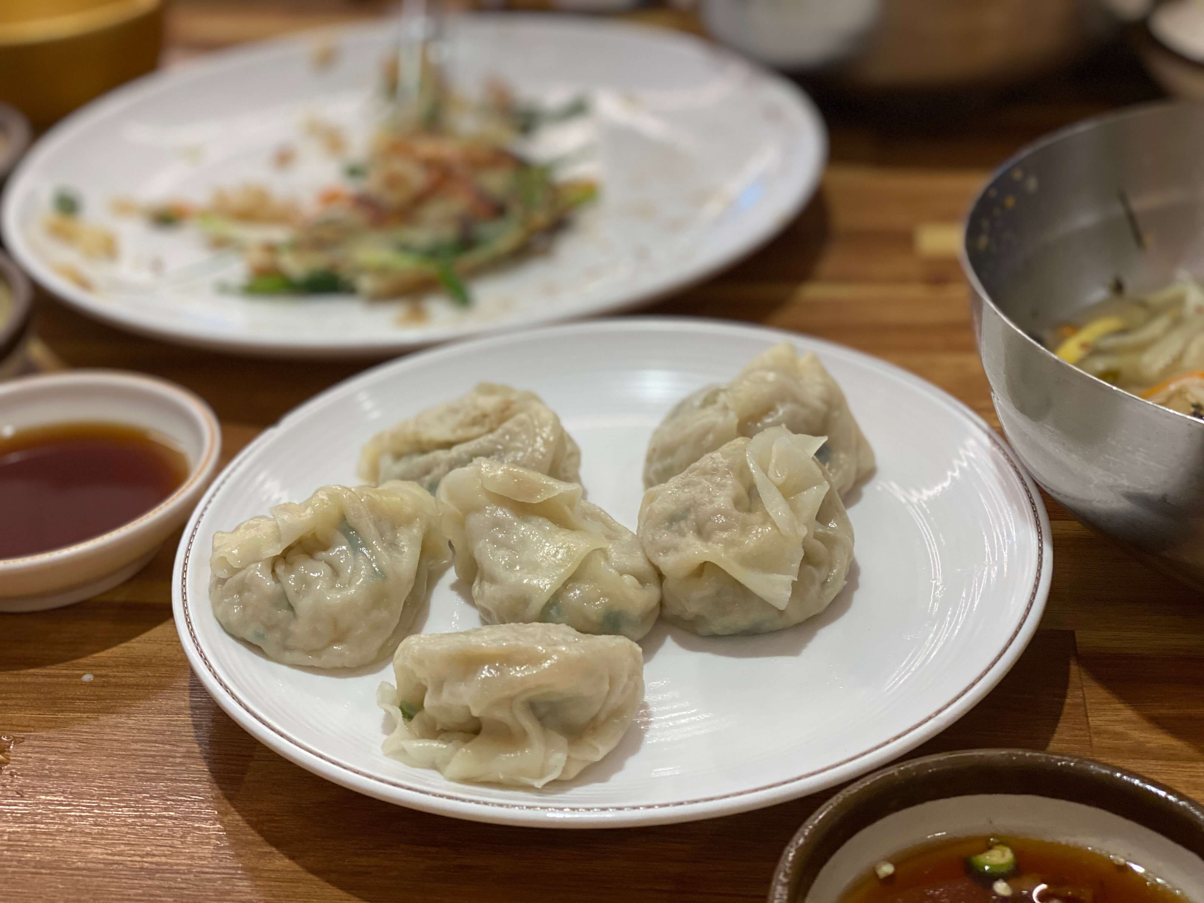 만두 1인분도 주문해서 먹었습니다. 1인분에 만두 6개 주시더라고요. 만두는 직접 빚으셨는지 부드럽고 속도 부추와 고기의 향이 강했습니다. 만두 크기는 작은 편은 아니지만 만두피가 얇고 힘이 없어서 한 입에 다 넣어 먹어야겠더라고요.