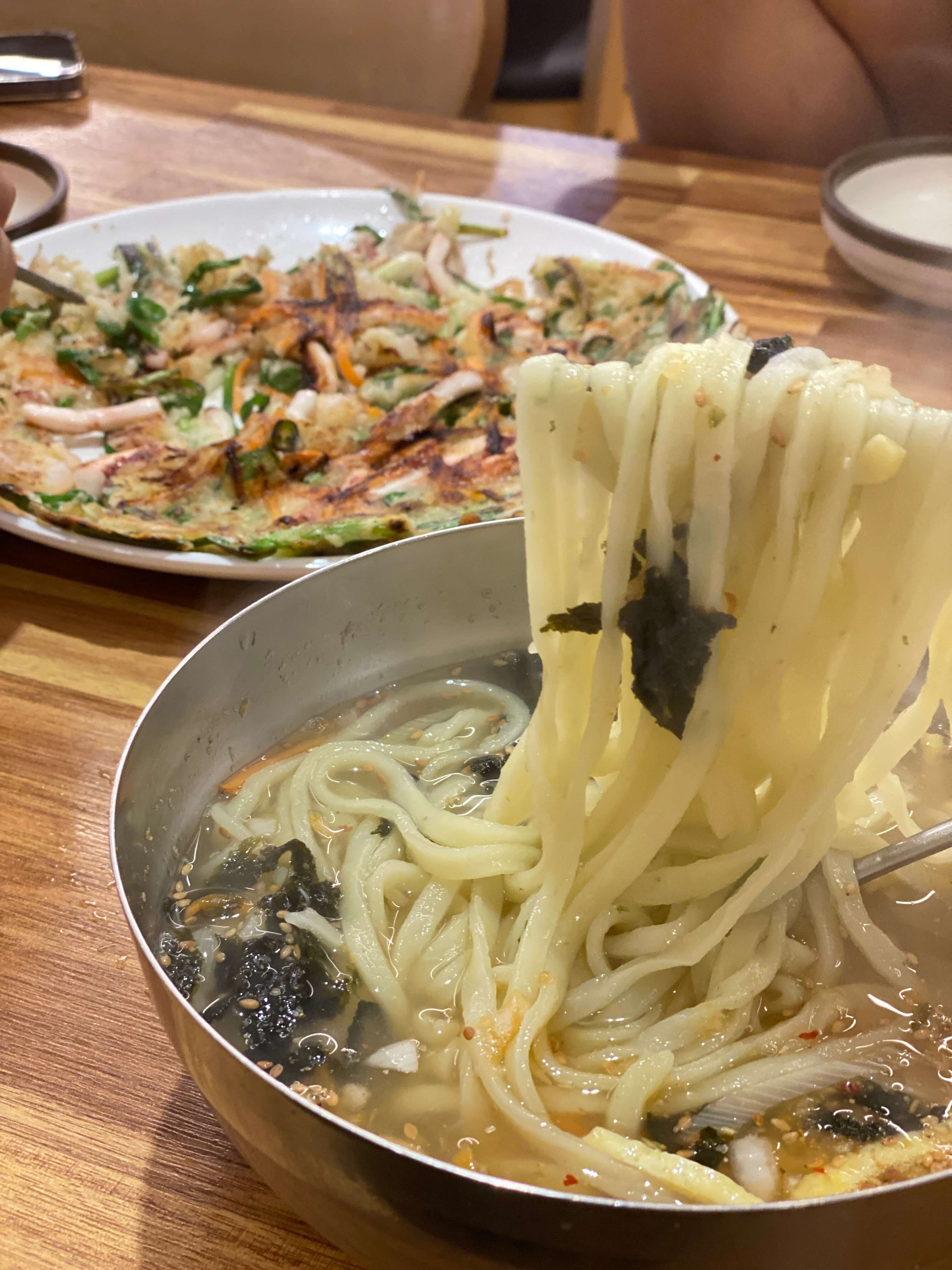 다들 칼국수 하나만 주문하는 게 아니라 해물파전도 같이 주문해서 드시더라고요. 저희도 칼국수랑 해물파전을 같이 주문해서 먹었는데 맛있게 잘 먹었어요.