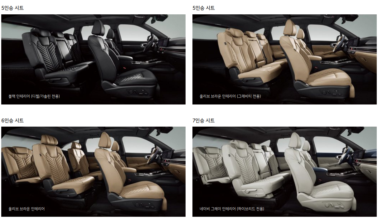 5,6,7인승은 선택할 수 있으나 시트 색상은 각 전용으로 선택이 불가하니 참고하시기 바랍니다.