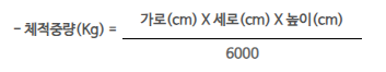 ▶ 부피중량(Kg) : 가로(cm) X 세로(cm) X 높이(cm) / 6,000