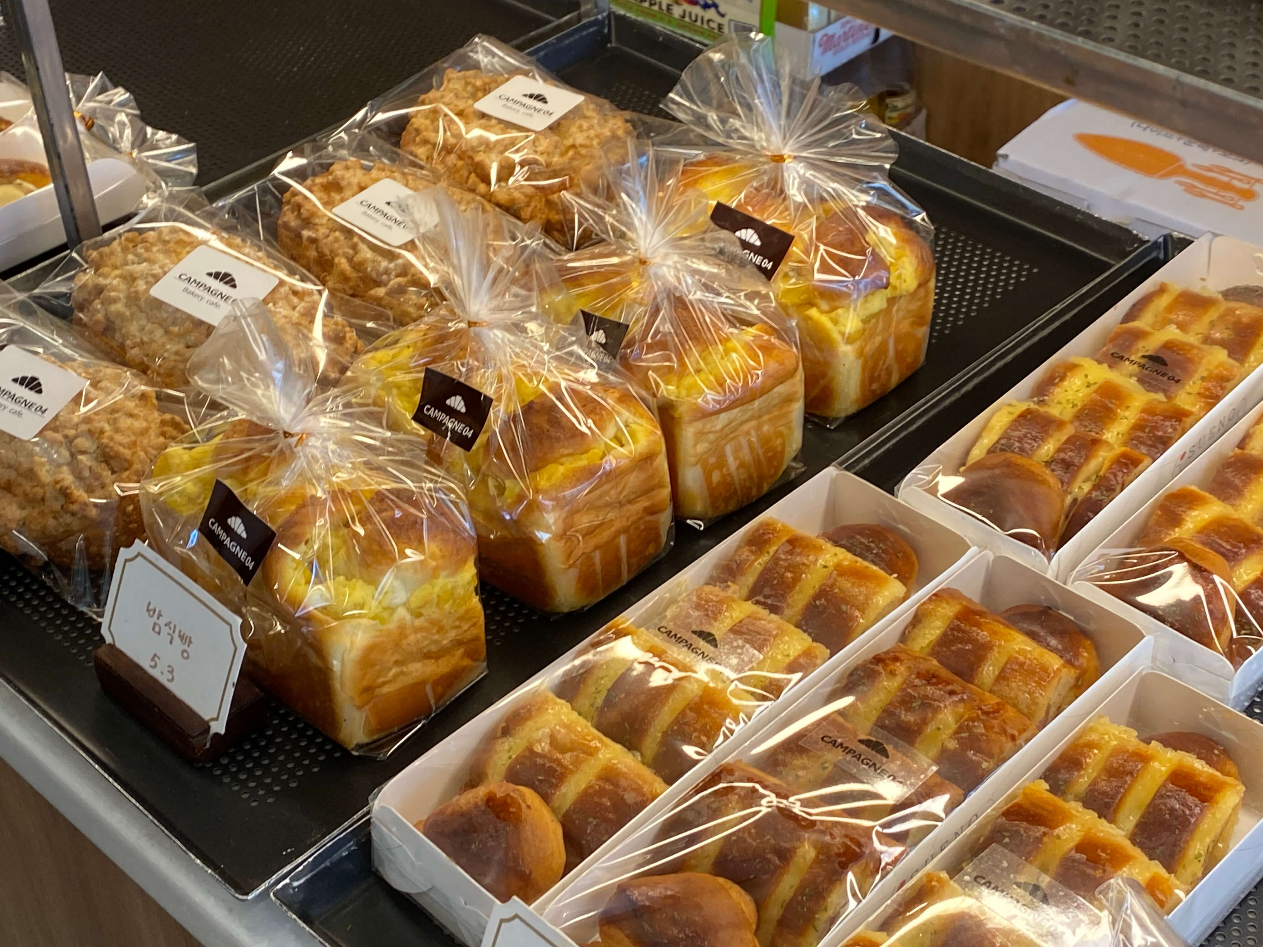 저희가 살펴보고 빵을 고르는 중에도 손님들이 계속 오더라고요. 깜빠뉴 04 단골 분이신듯 엄청 익숙하게 오셔서 고민 없이 빵을 고르는 모습들이 많았어요. 단골분들이 고민 없이 고르시는 빵들을 저희도 따라 골라봤어요. 특히나 인기있는 빵들이 있더라고요?!