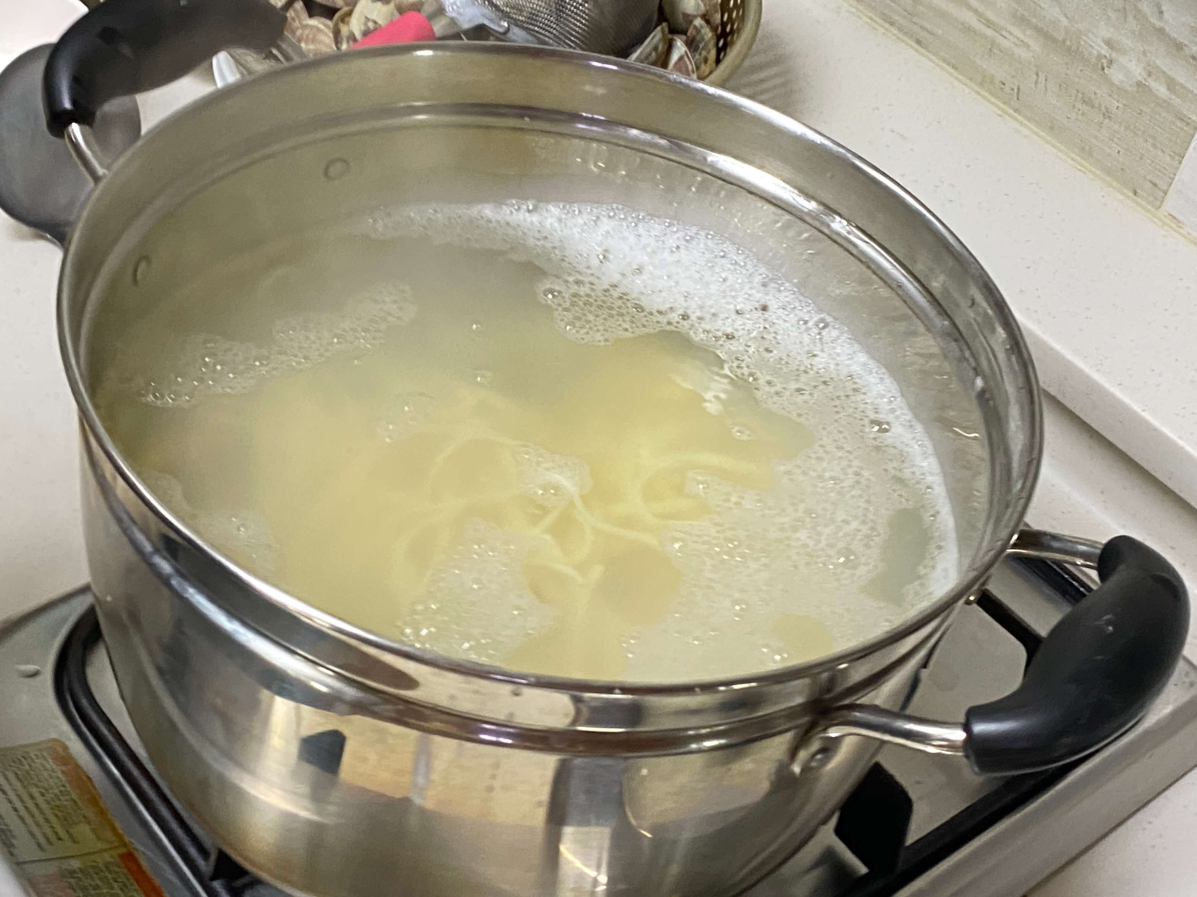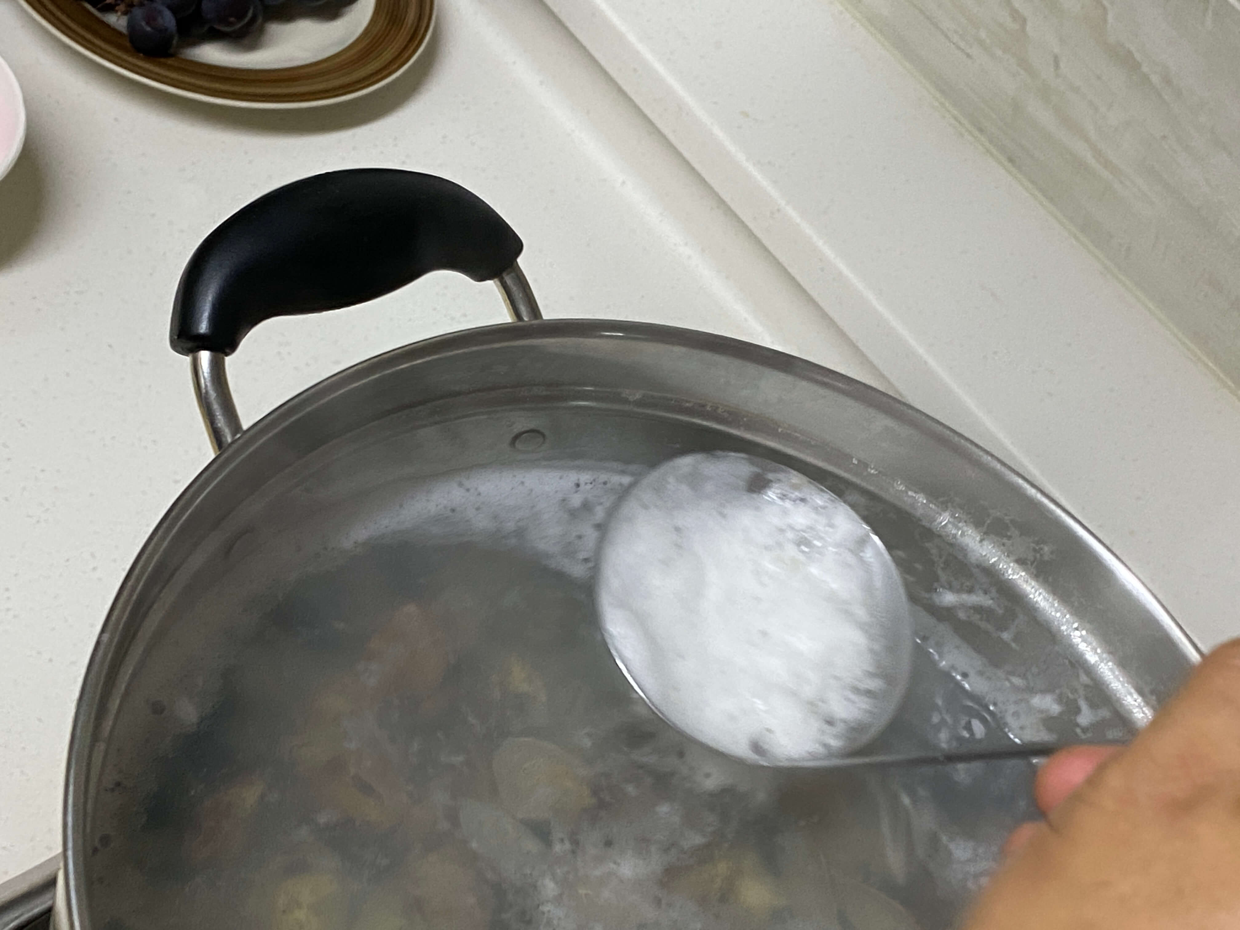 뚜껑을 덮고 끓이다보면 거품이 생겨서