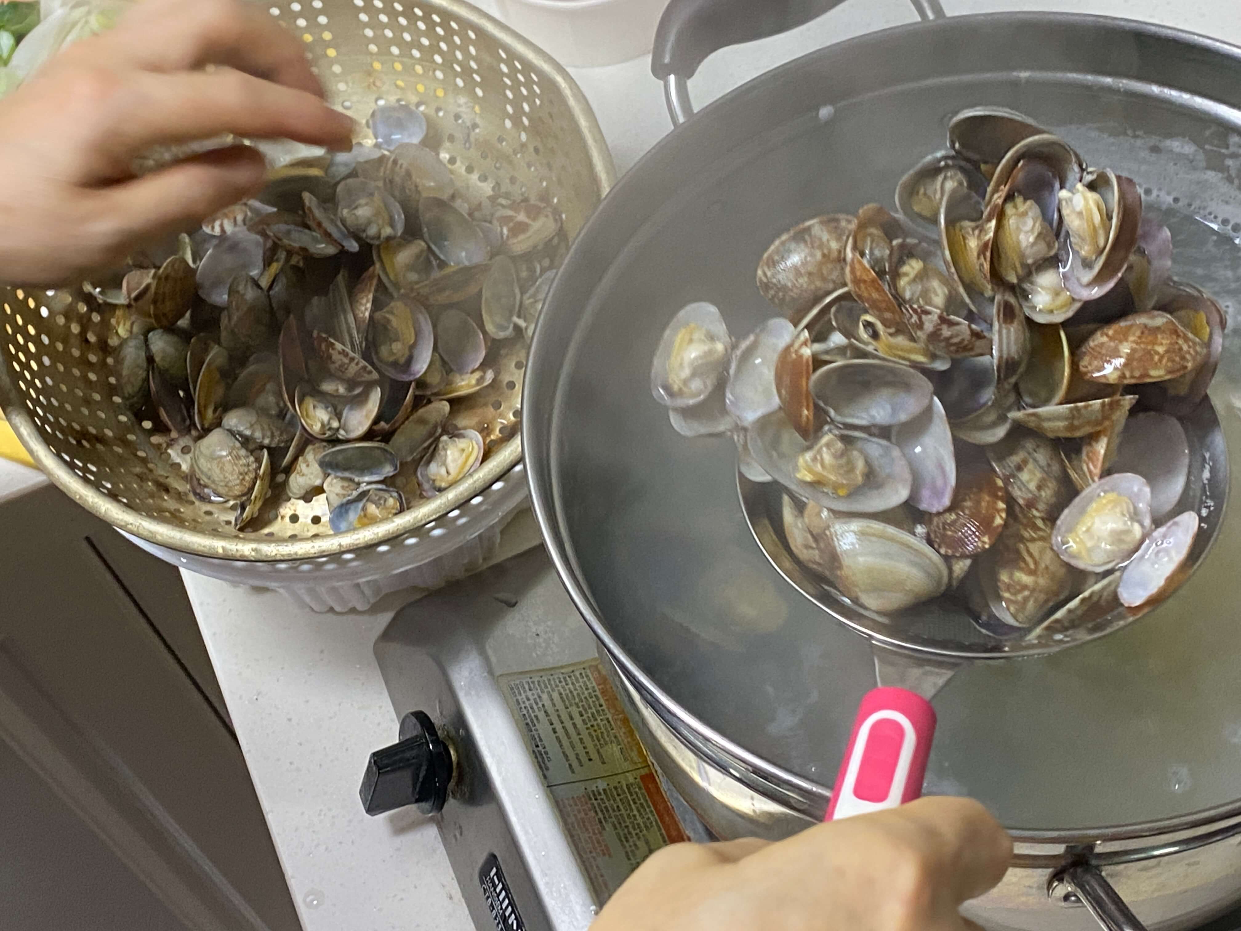 2. 바지락을 건져냅니다.