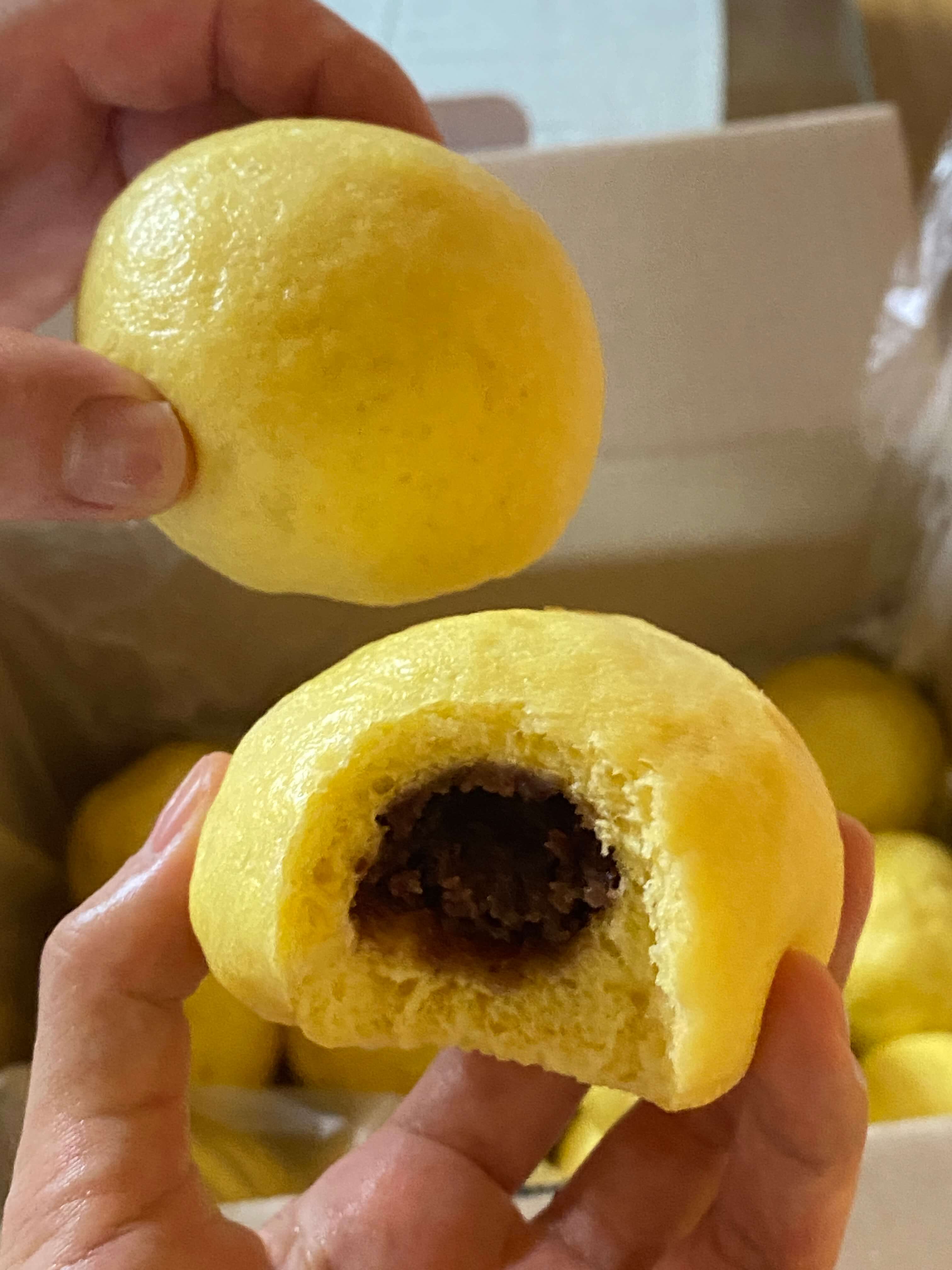 그리고 옛날 옥수수 찐빵은 갓 지었을 때의 맛이 기대 되는 맛이었어요.개인적으로 저는 팥을 좋아하질 않는데 팥이 들어있어서 아차 했지만 그래도 빵 자체가 약간 달달하니 맛있더라고요. 옥수수가 들어가서 그런지 약간 노랑 노랑한 빛도 귀여웠어요. 옛날 옥수수 찐빵은 엄청 달지도 않고 인공적인 맛은 적어서 담백한 맛이 강했습니다.