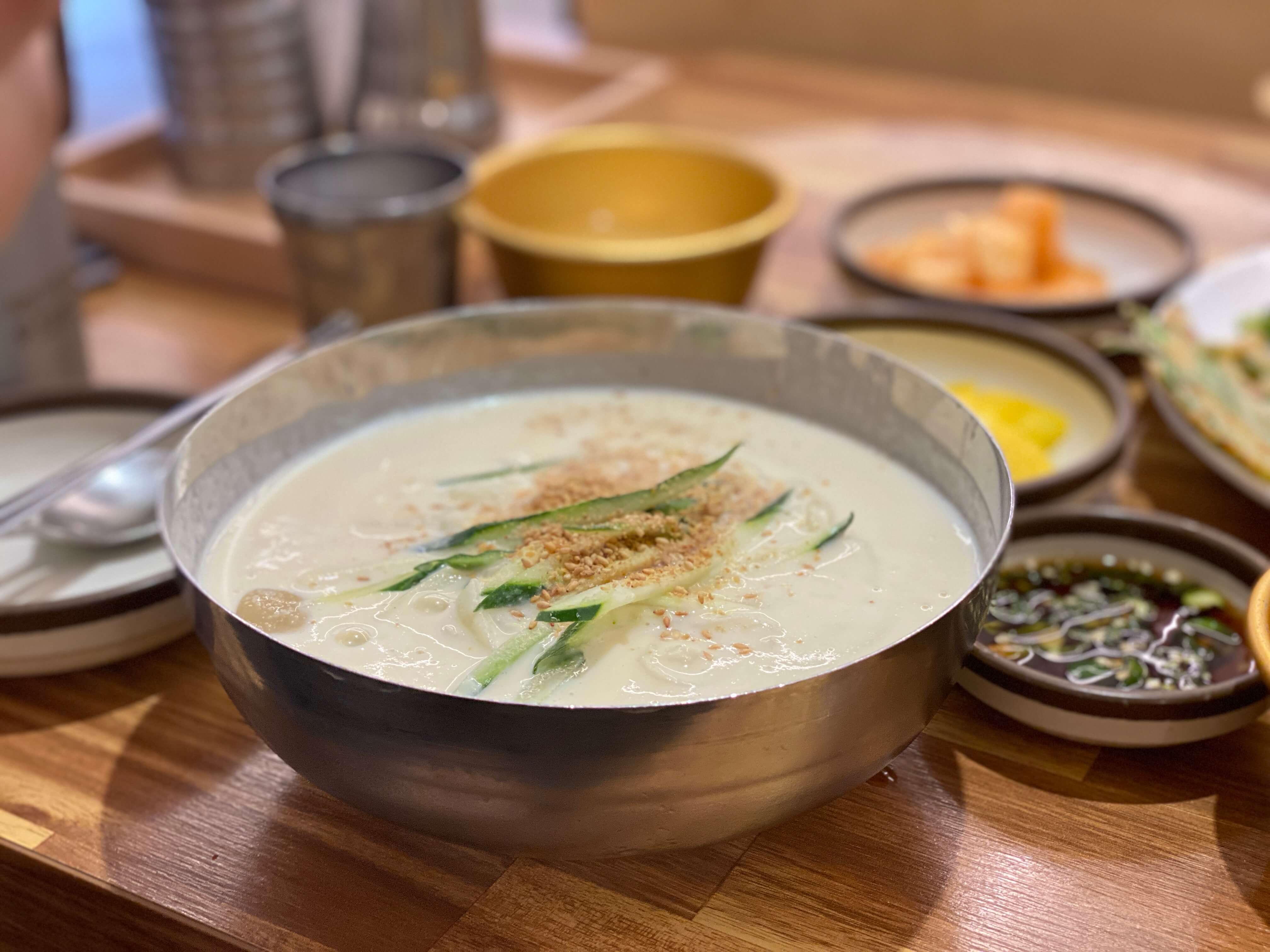 콩을 아주 잘게 갈아서 목넘김이 좋았어요. 하지만 콩칼국수 바닥에는 조금 알맹이의 콩들이 있긴 있었는데 씹히는 식감이며 직접 만든 느낌이라 더 좋았습니다.