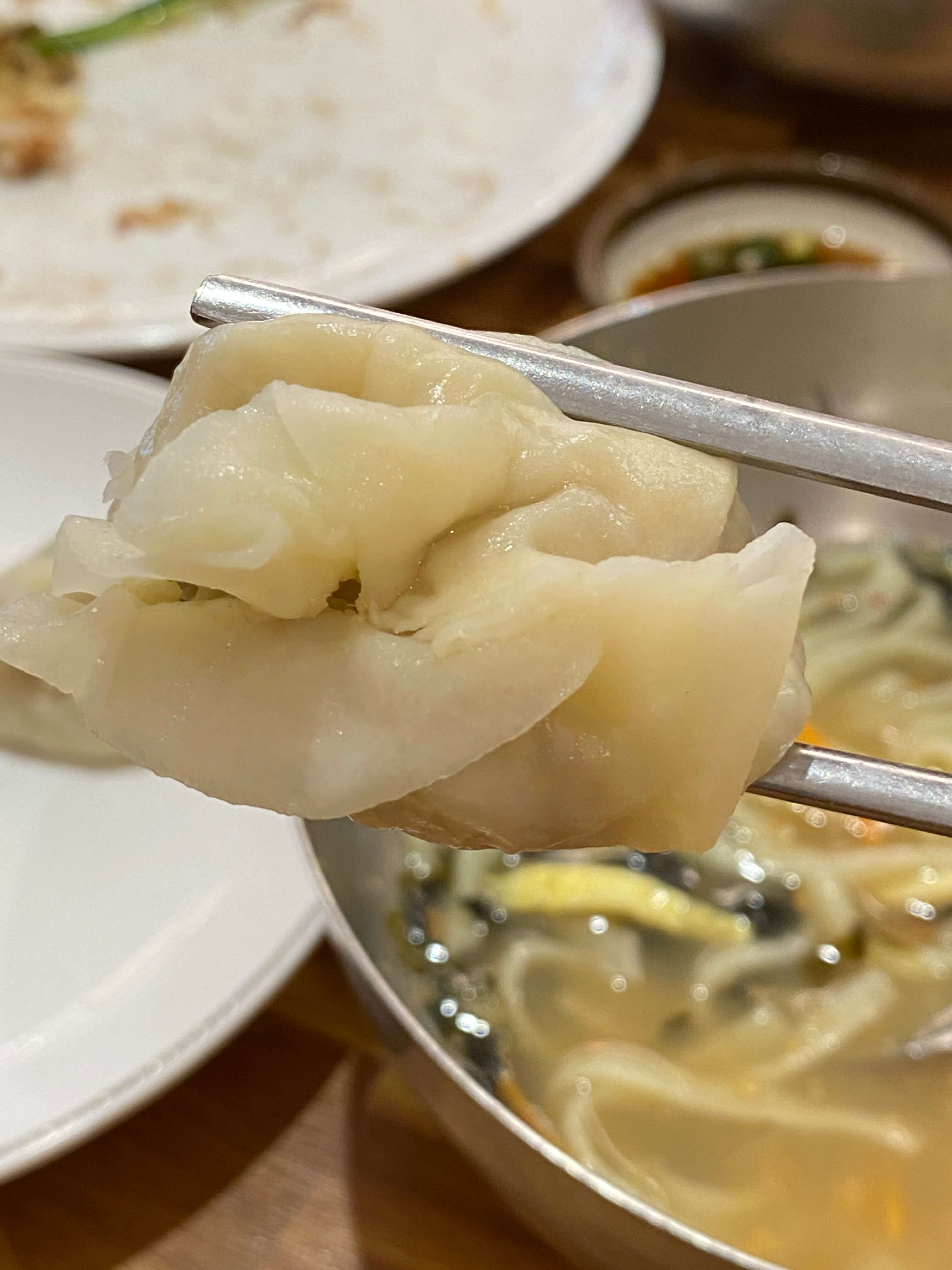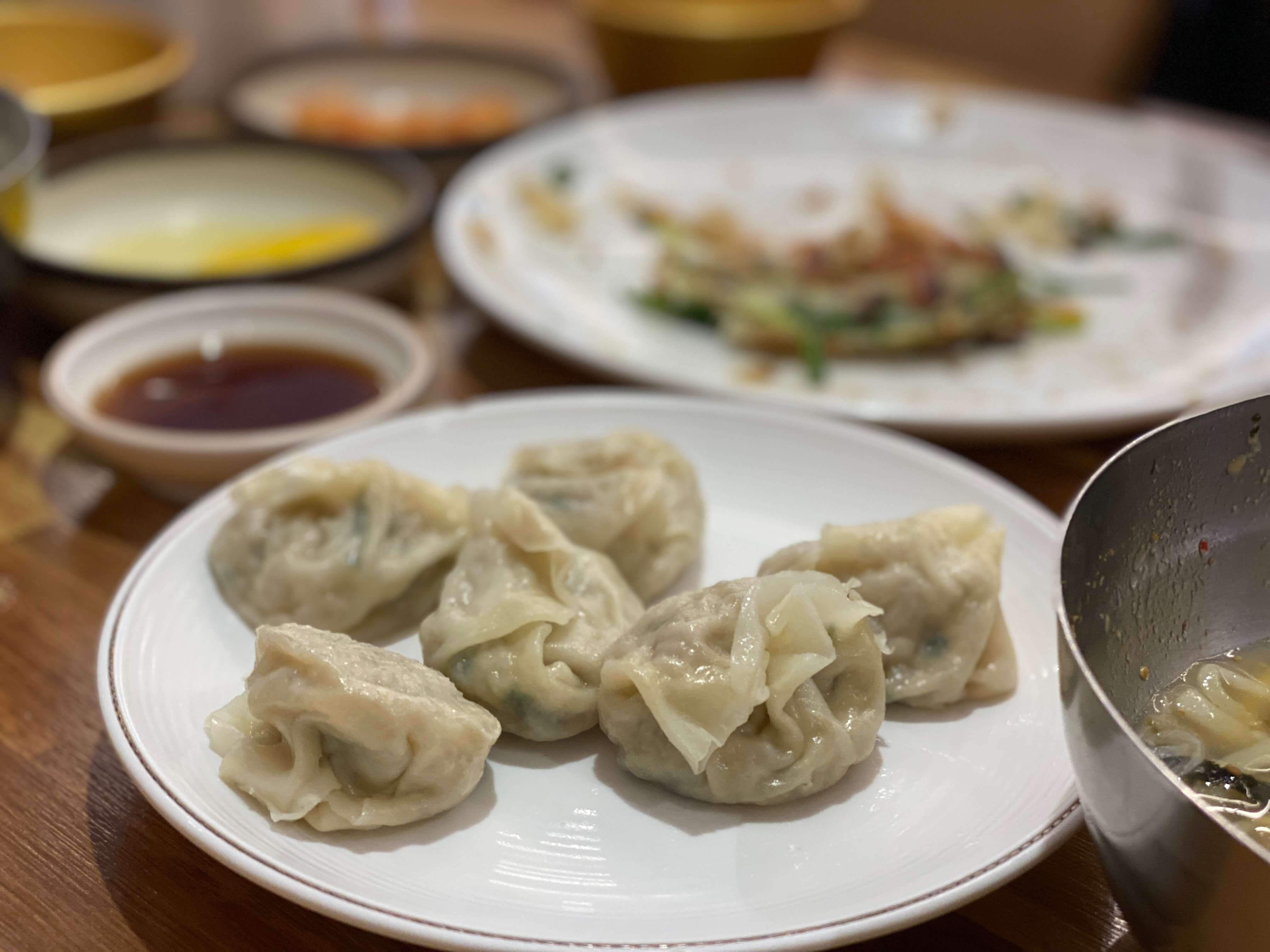 만두 1인분도 주문해서 먹었습니다. 1인분에 만두 6개 주시더라고요. 만두는 직접 빚으셨는지 부드럽고 속도 부추와 고기의 향이 강했습니다. 만두 크기는 작은 편은 아니지만 만두피가 얇고 힘이 없어서 한 입에 다 넣어 먹어야겠더라고요.