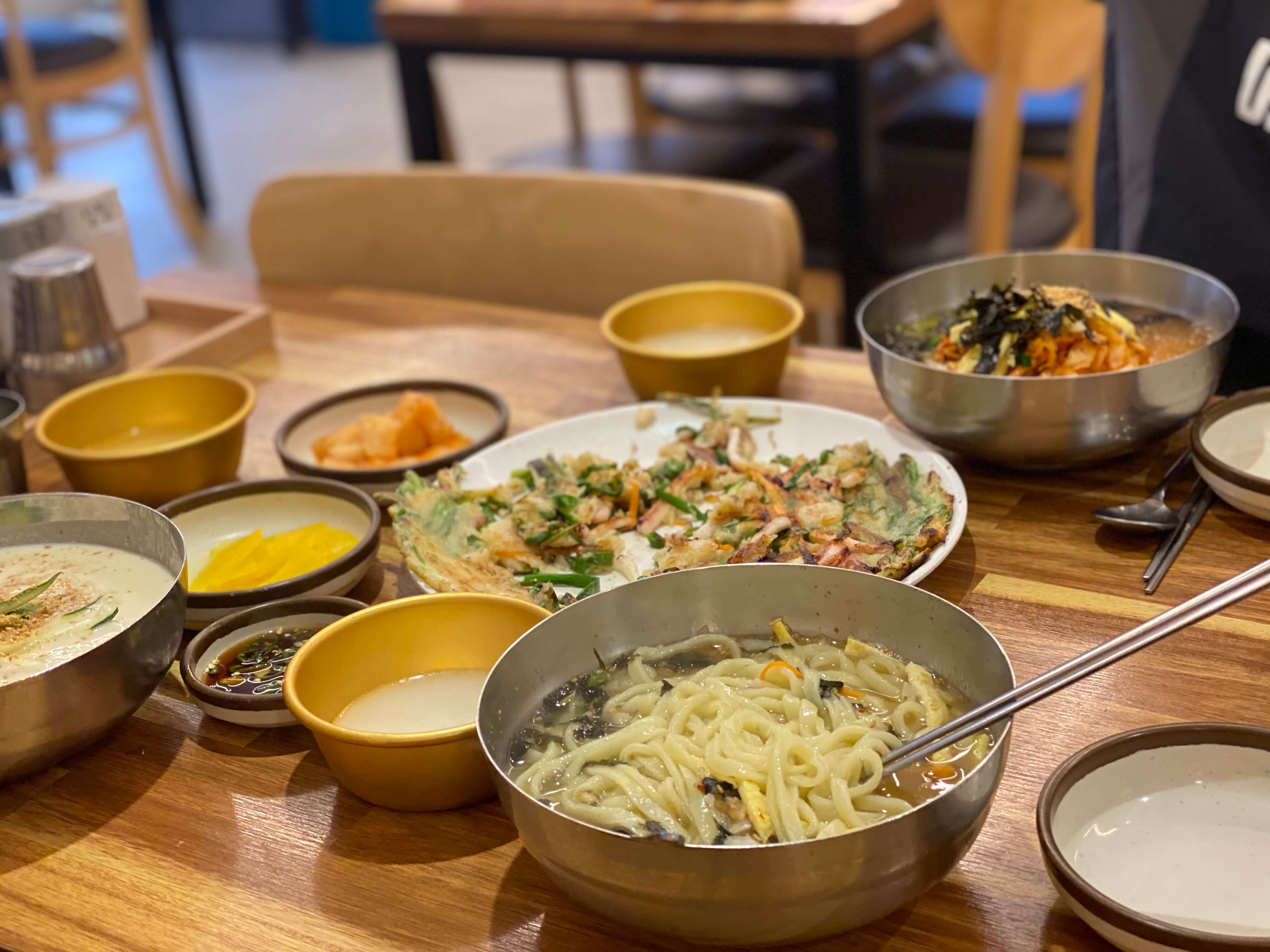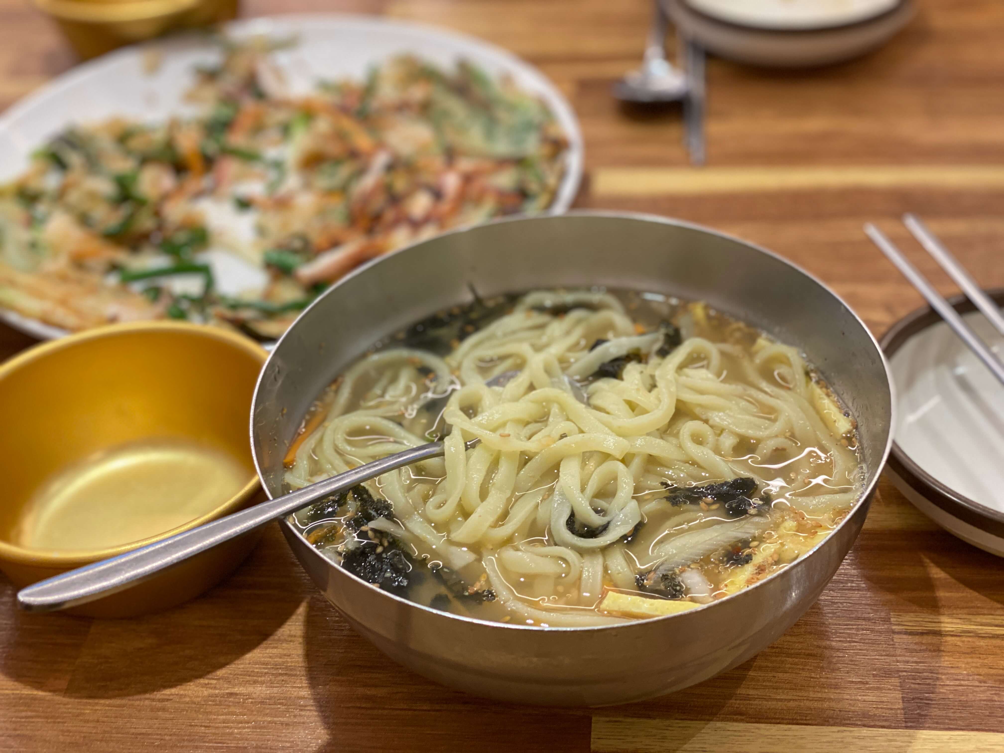다들 칼국수 하나만 주문하는 게 아니라 해물파전도 같이 주문해서 드시더라고요. 저희도 칼국수랑 해물파전을 같이 주문해서 먹었는데 맛있게 잘 먹었어요.