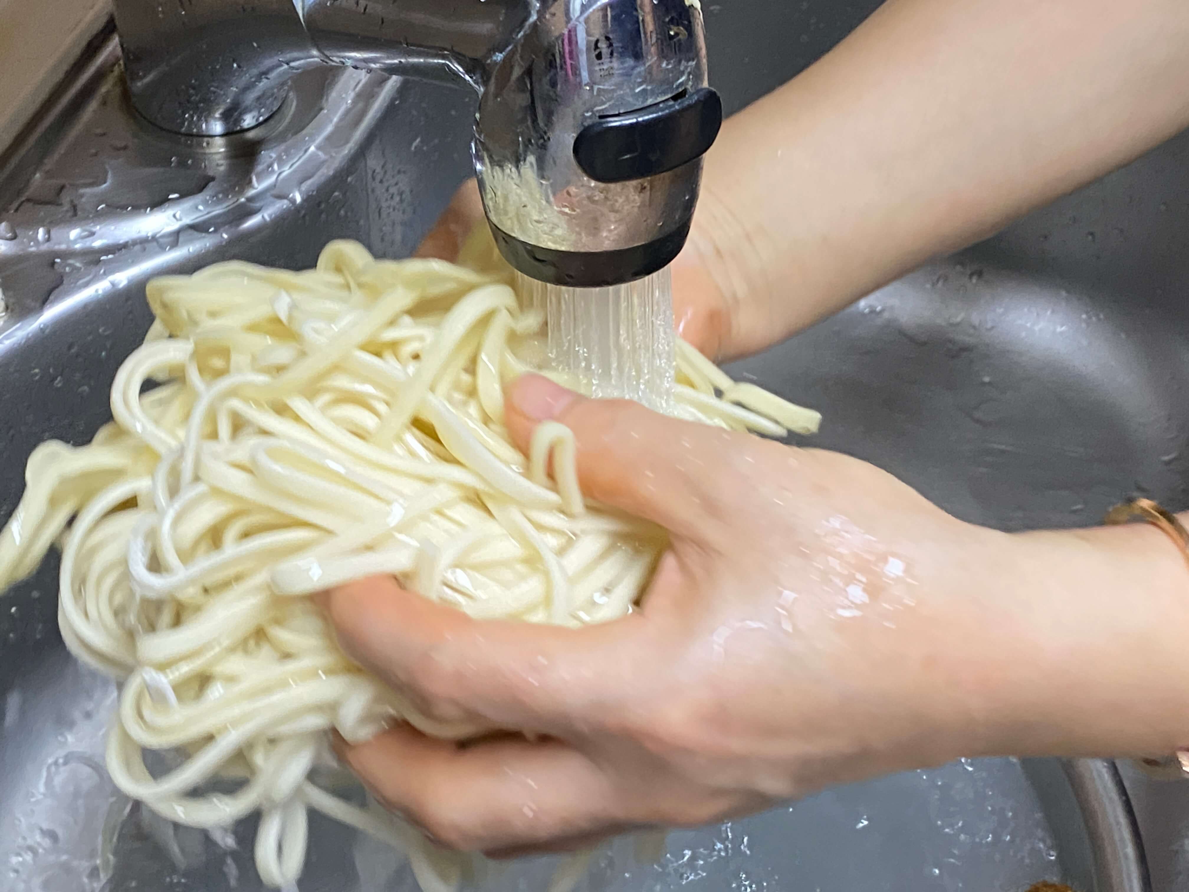 3. 칼국수와 수제비를 간단히 헹궈 끓입니다.