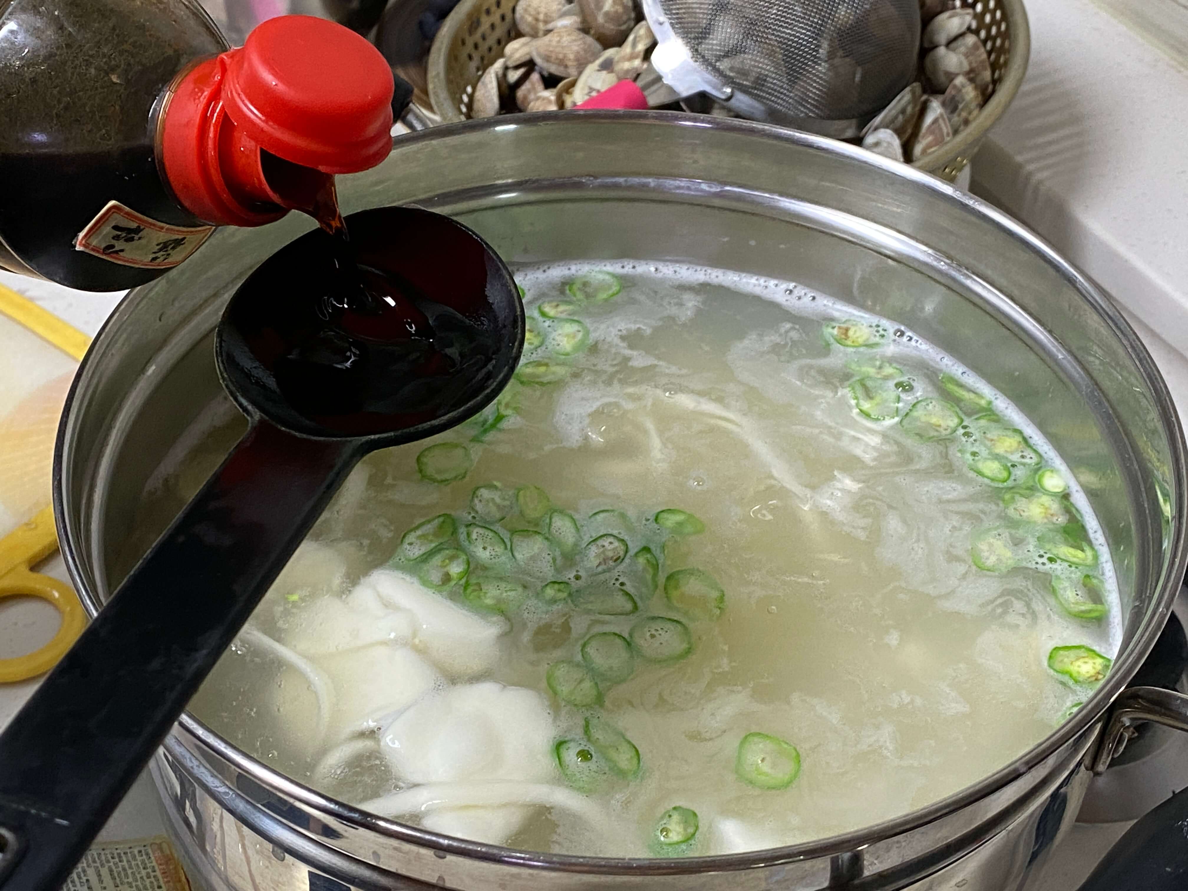 5. 대파와 건져놓은 조개를 넣고 마무리.