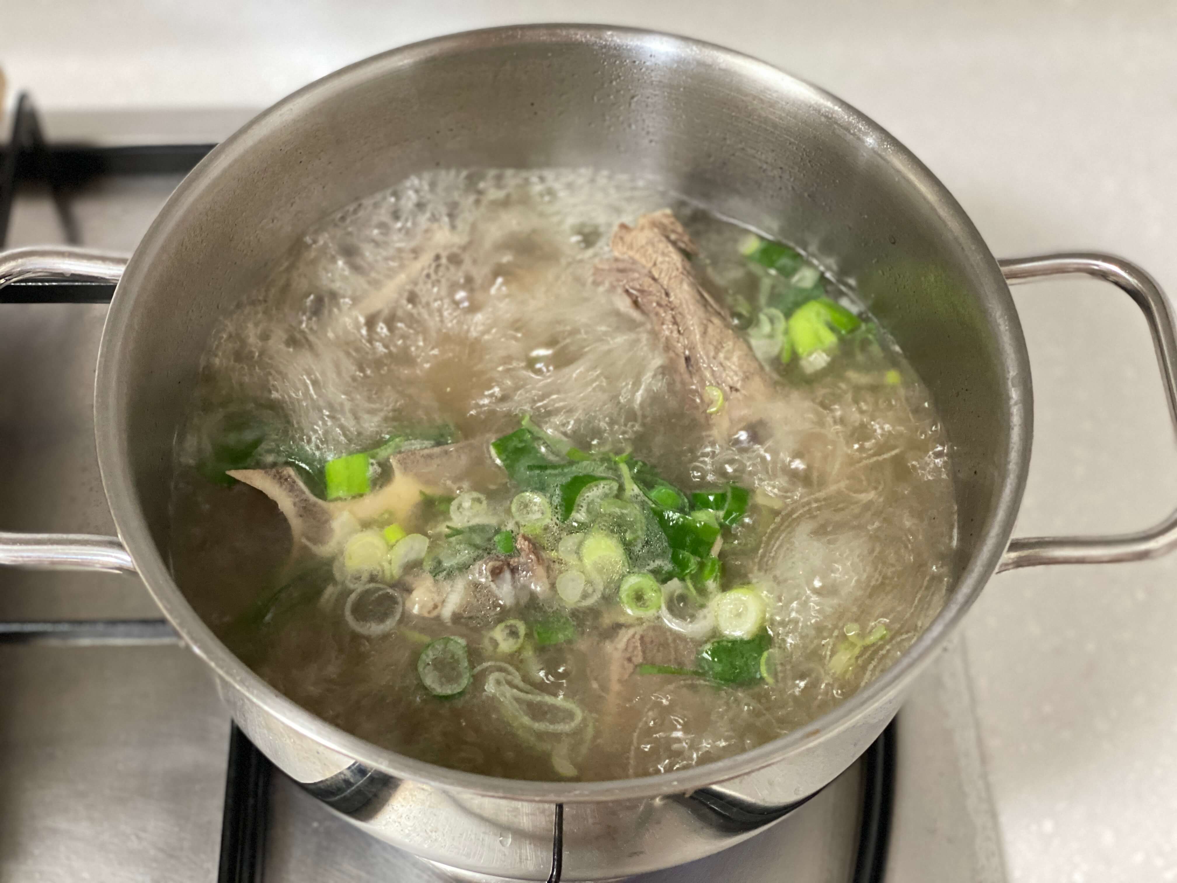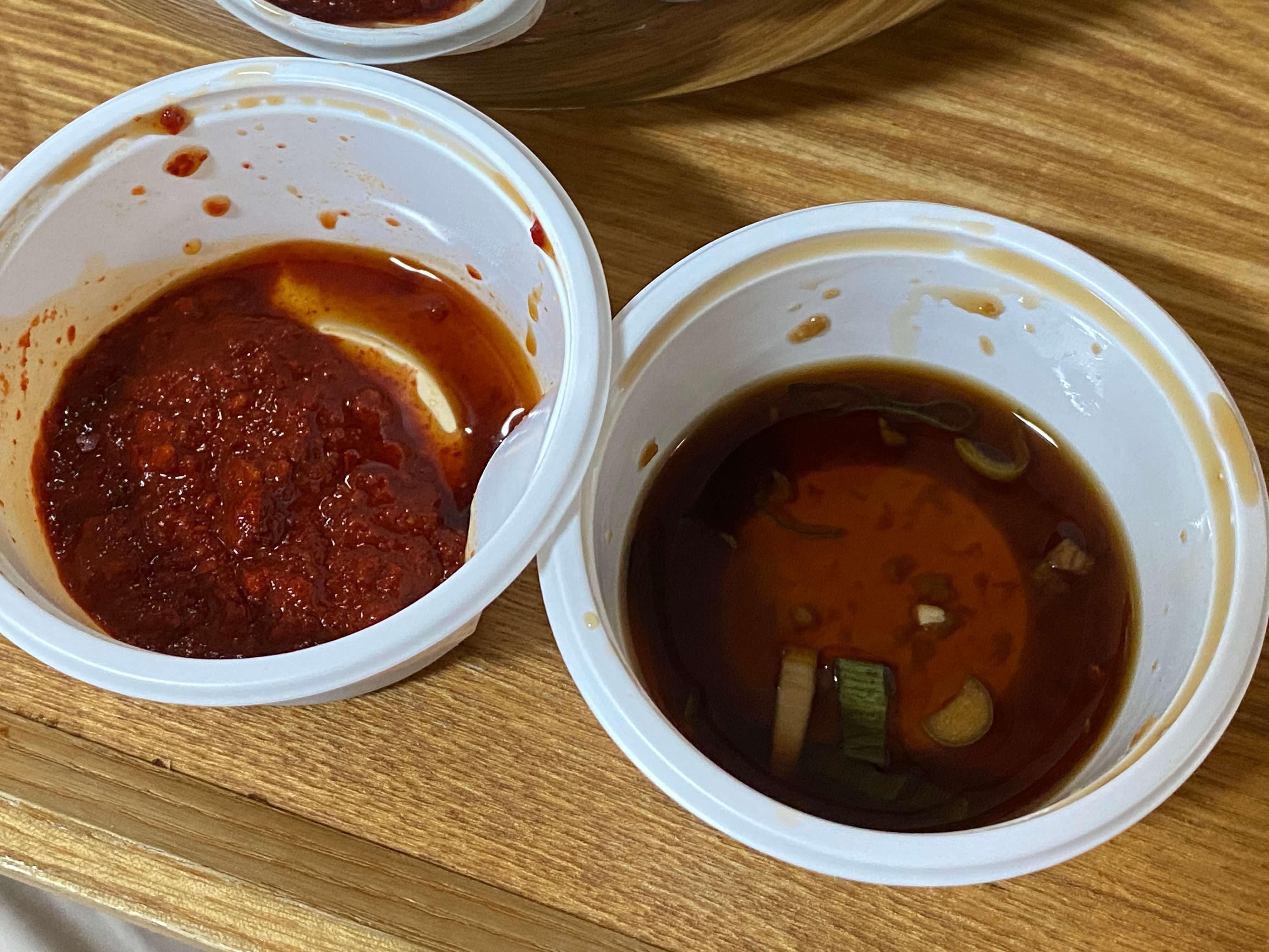 그 집 갈비탕에서 파랑 당면 그리고 다대기랑 고기 찍어 먹을 간장 소스도 같이 챙겨주셨어요.