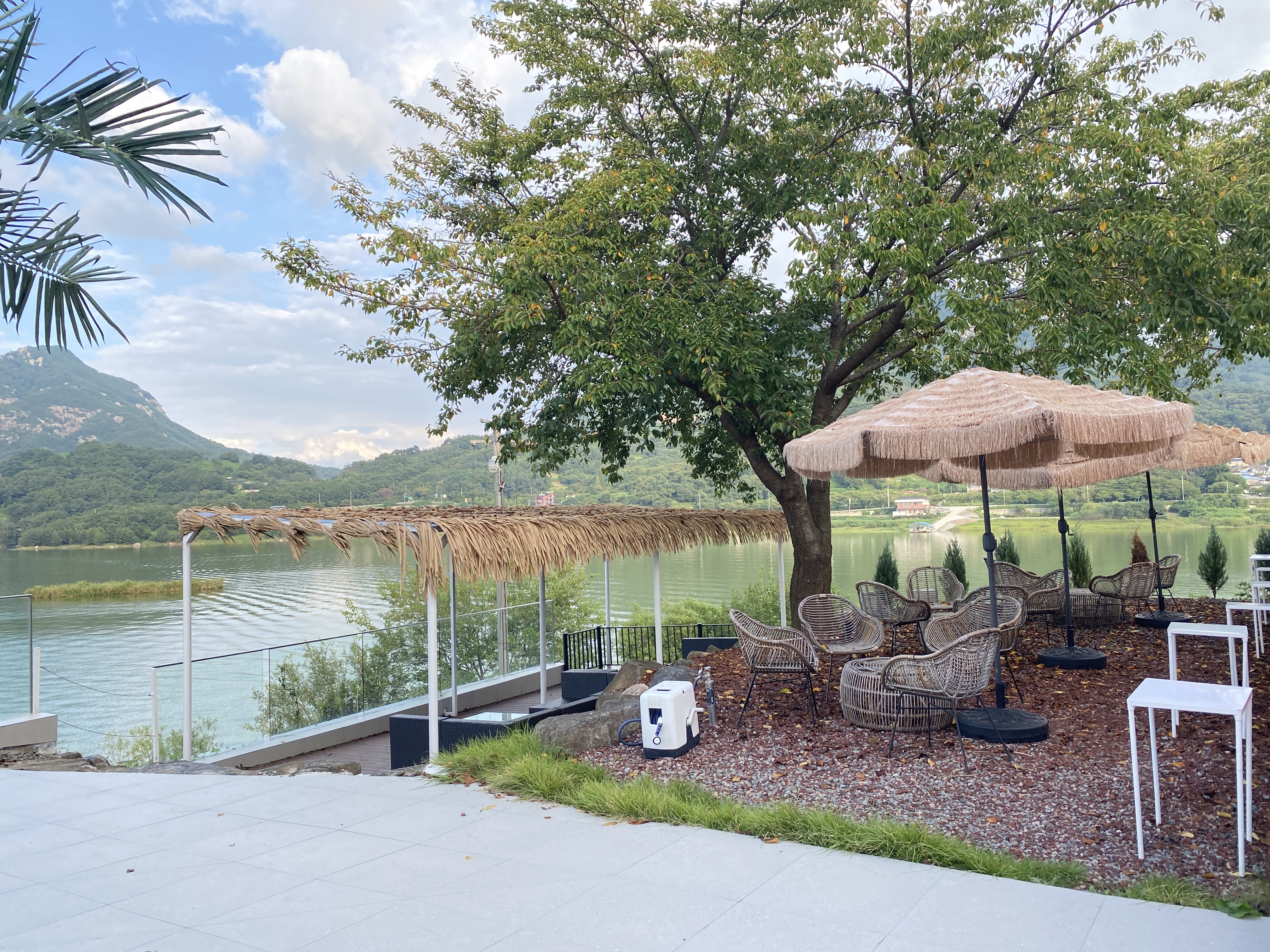 합천 로우풀 카페는 야외도 예쁘게 잘 꾸며져 있었어요. 일단 합천호라는 엄청난 뷰를 앞두고 있으니 카페에 들어서자마자 힐링이 되는 기분이었어요. 이제는 날씨도 한껏 가을 느낌이라 야외에서도 즐기기 좋을 거 같아요.